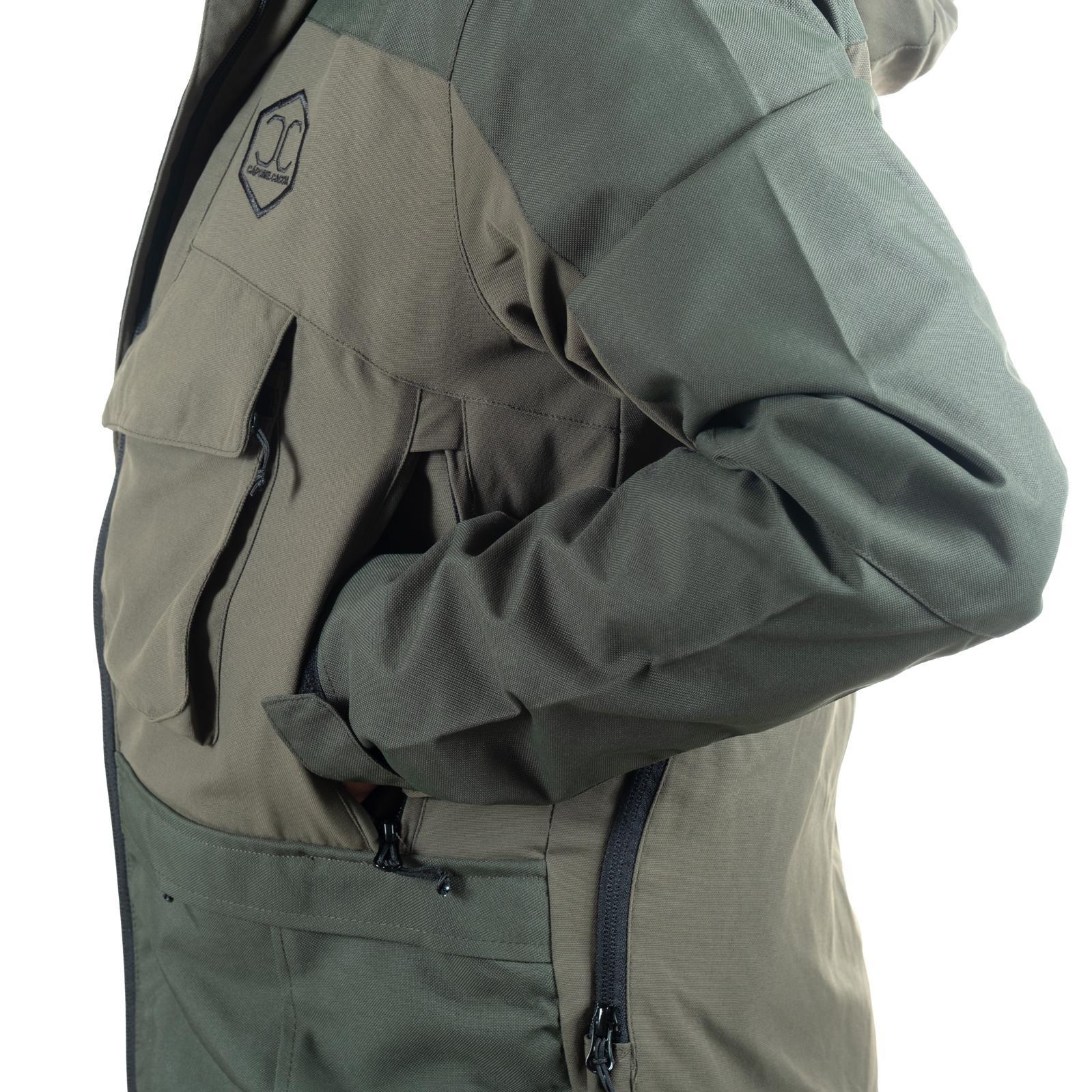 È dotata di molteplici tasche con chiusure a zip, tra cui due tasche al petto pensate per alloggiare dispositivi GPS o satellitari, di ampie tasche frontali multifunzione e di un tascone posteriore estremamente capiente.